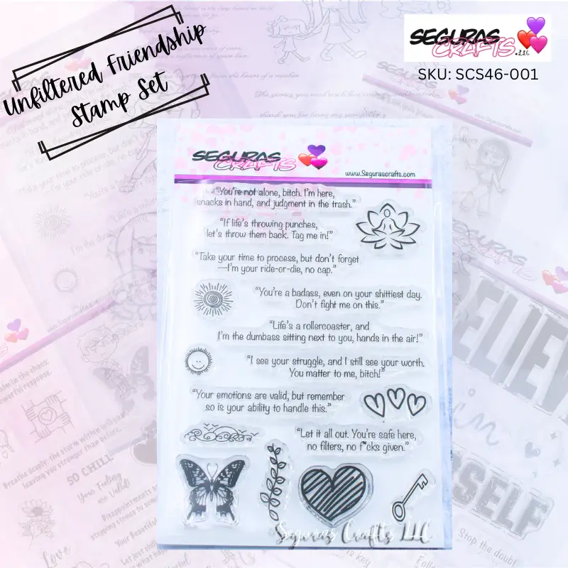 The Unfiltered Friendship Stamp Set is your go-to for crafting projects that celebrate raw, unapologetic friendship. Inspired by the unfiltered way we uplift and support our closest friends, this set combines bold sentiments with life-inspired clip art to add personality and meaning to your creations.